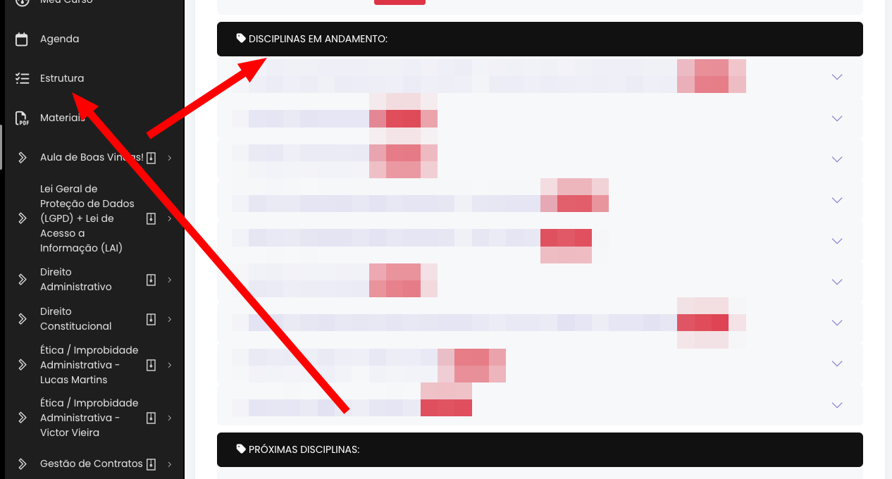Se, ao acessar o curso na área do aluno, as aulas não estiverem agrupadas por disciplina e aparecerem apenas em uma lista simples, pode ser que a configuração esteja desativada.