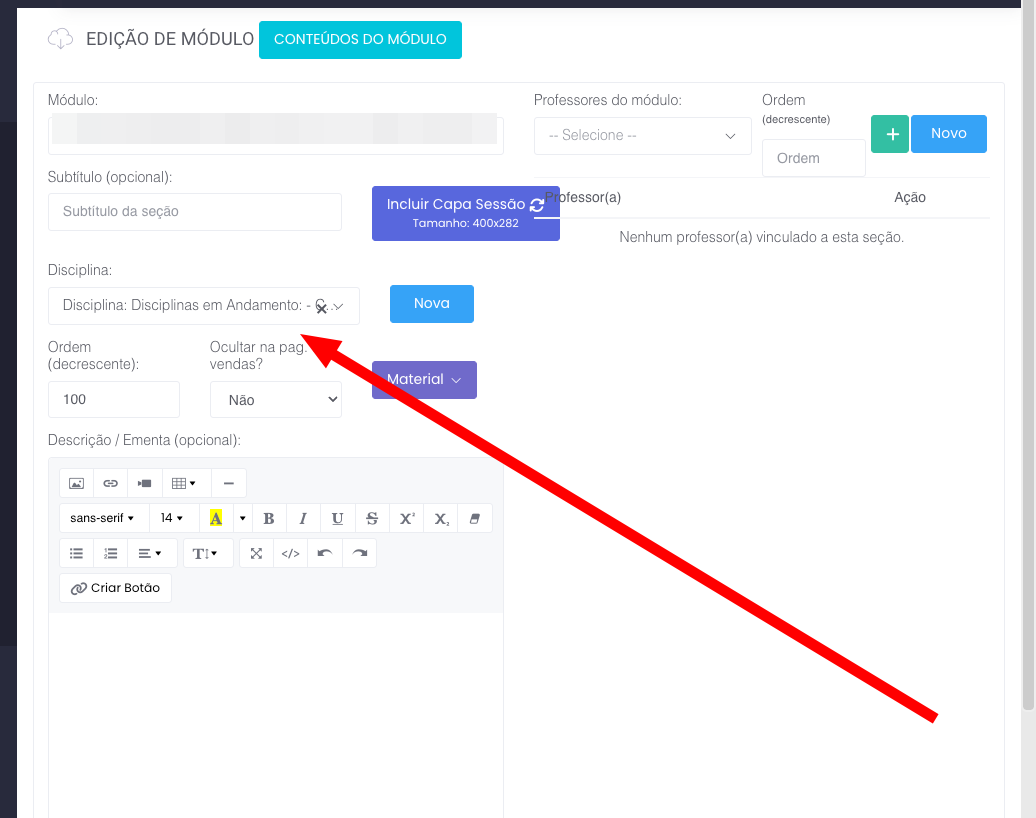 Acesse o painel administrativo e vá até a tela de edição de disciplina.