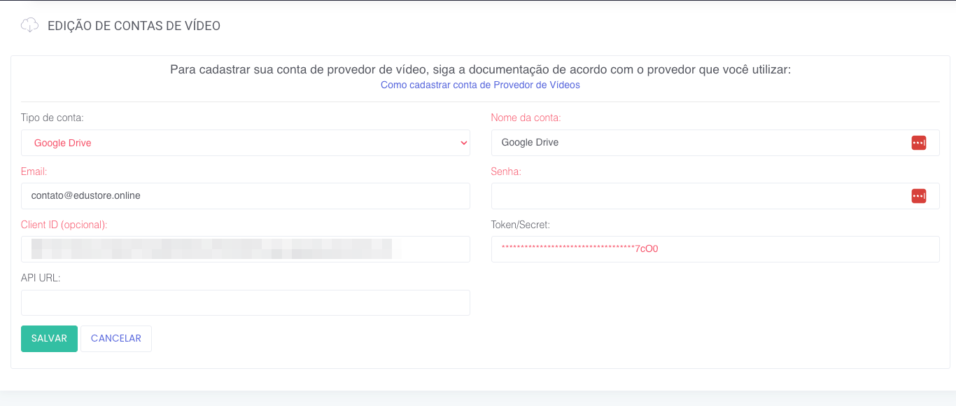 Basta clicar em salvar e sua conta Google Drive está habilitada para cadastrar vídeos!