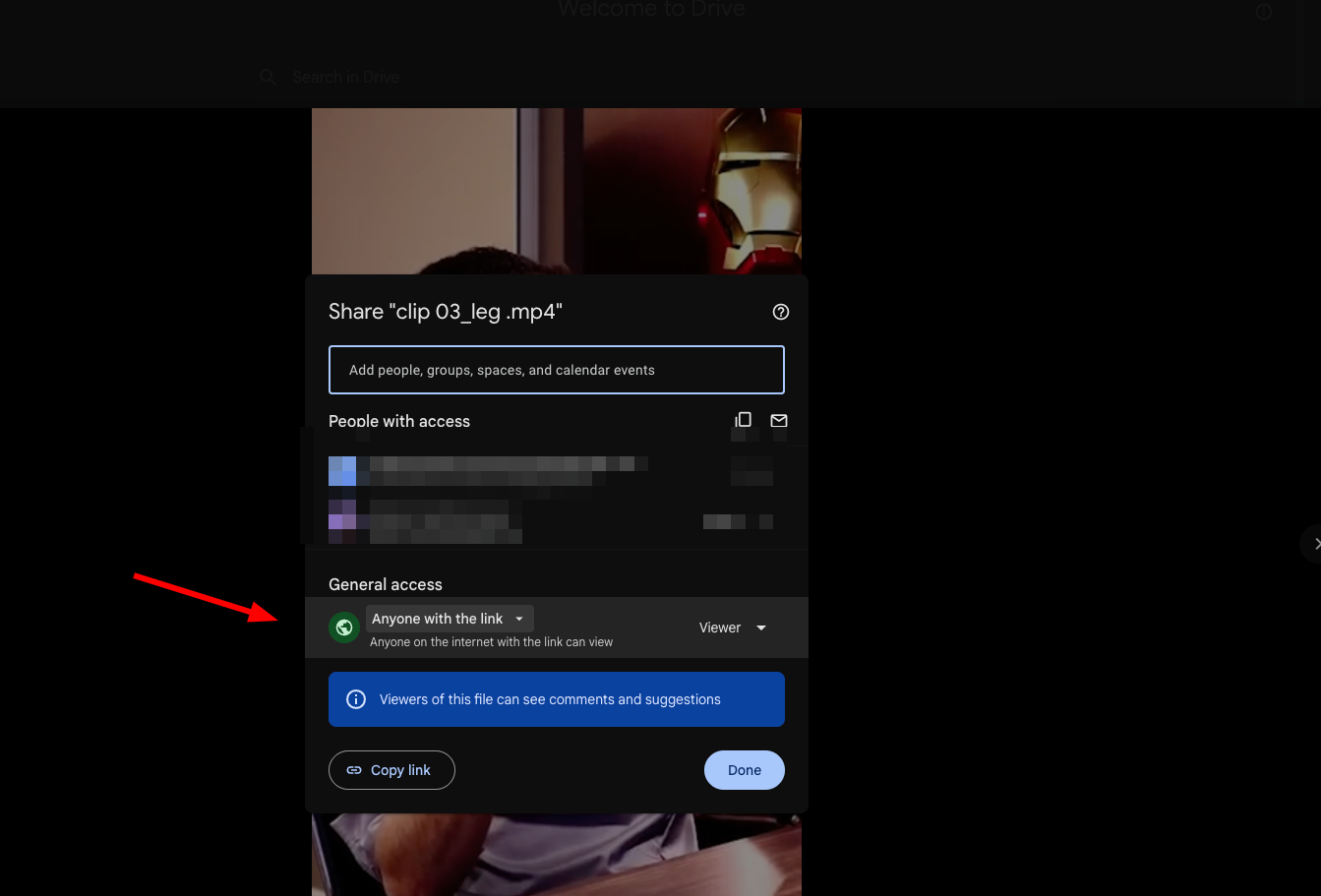 Os vídeo no Google Drive precisam estar com a permissão de visualização para qualquer um que tiver o link do vídeo: