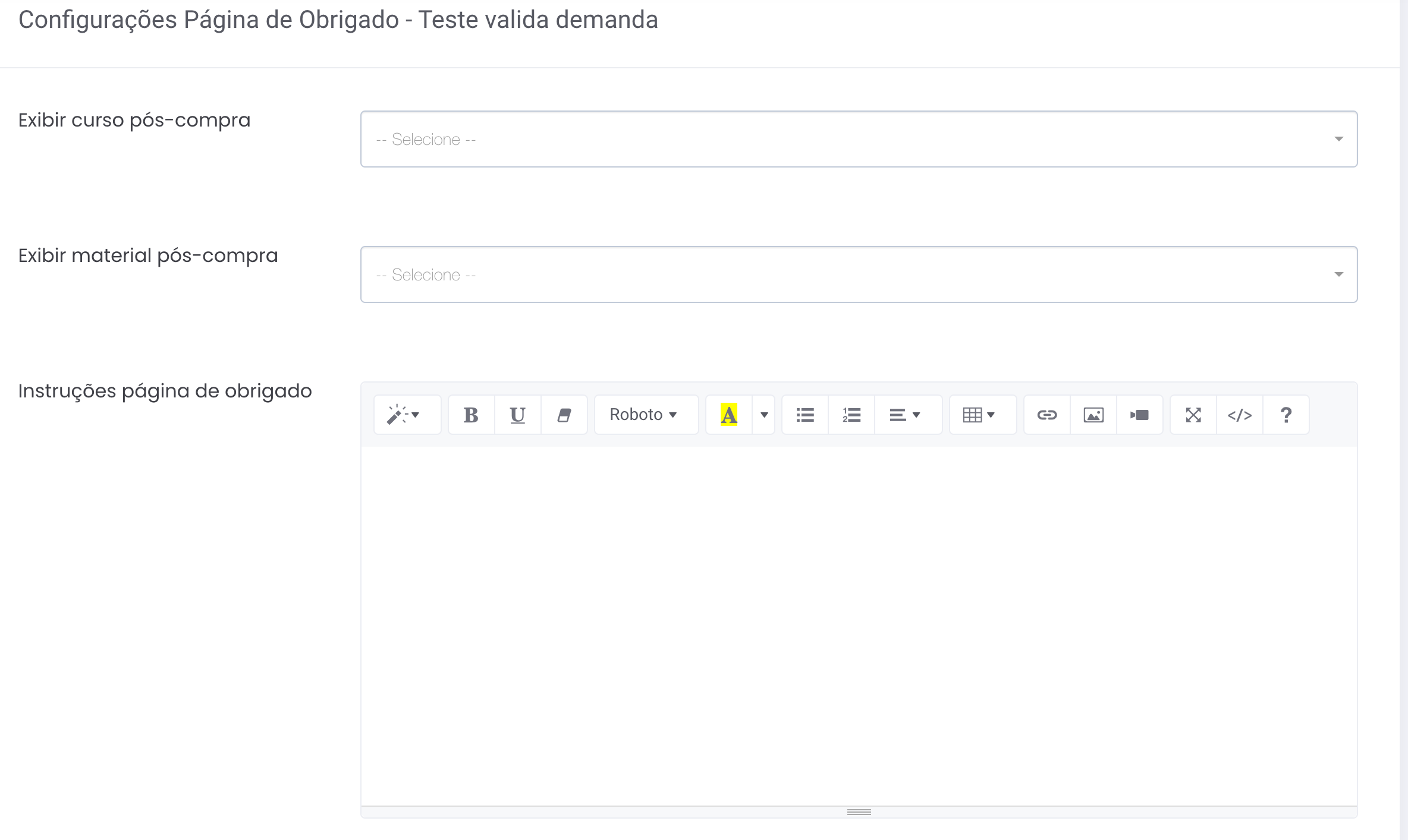 Nesta etapa você poderá mostrar um curso e um material após a compra e também oferecer instruções personalizadas.