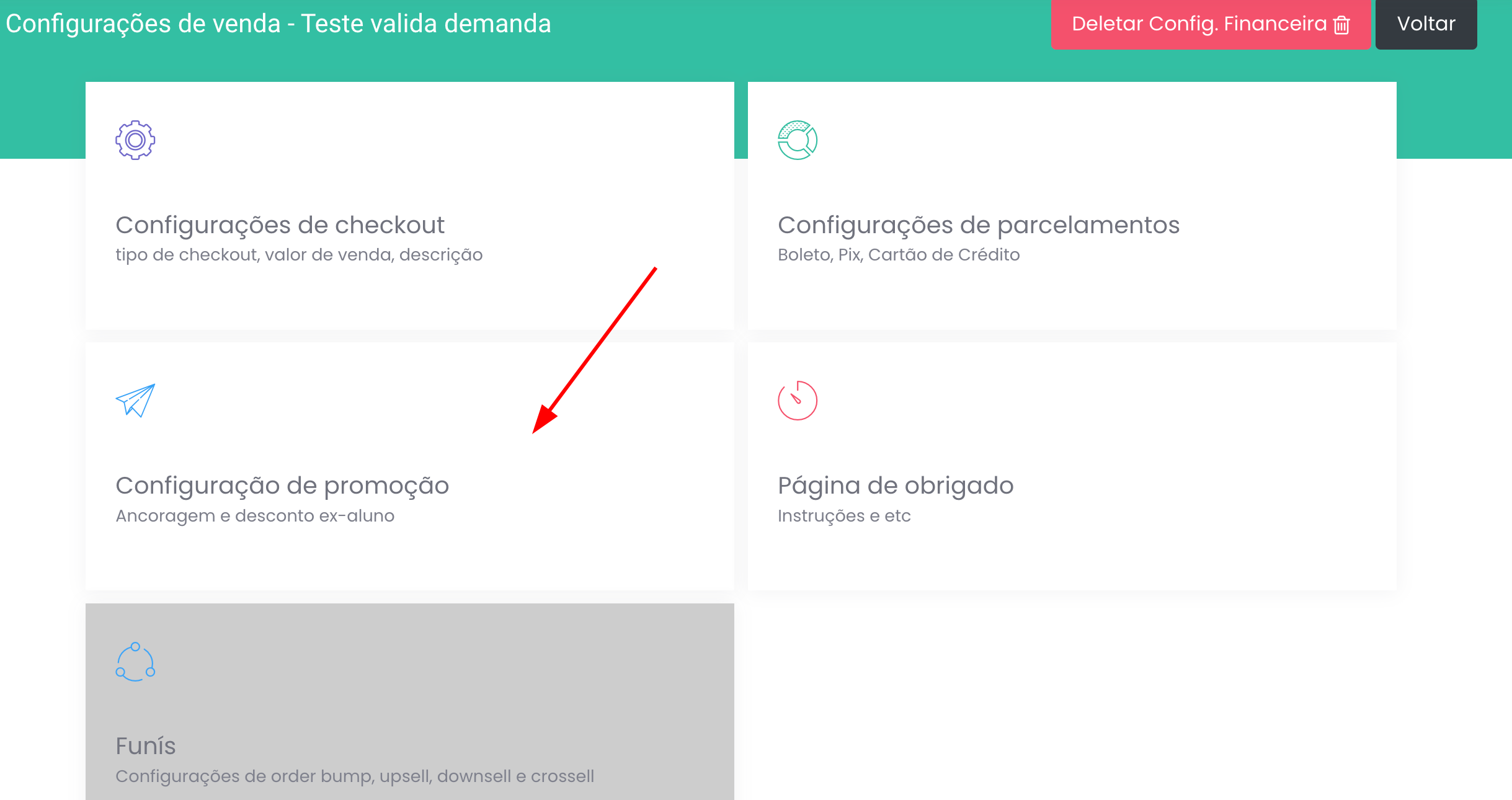 Nossa próxima etapa é configurar a promoção, seja ela ancoragem, desconto ex-aluno, etc…