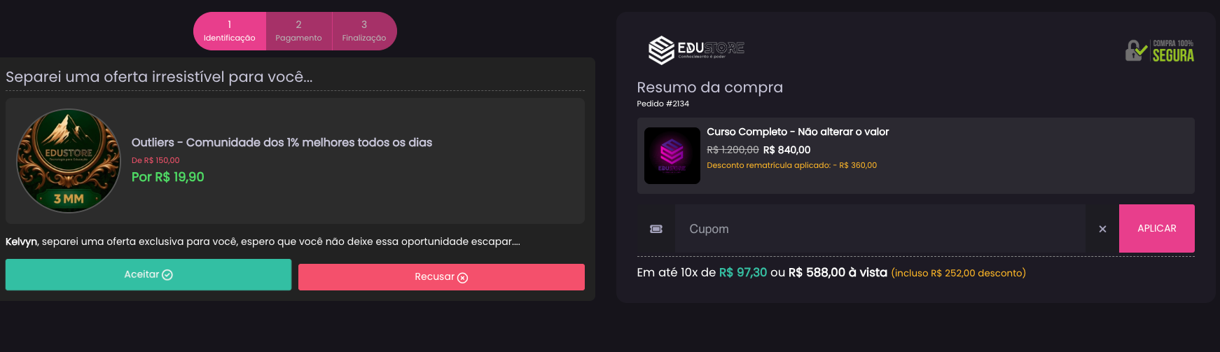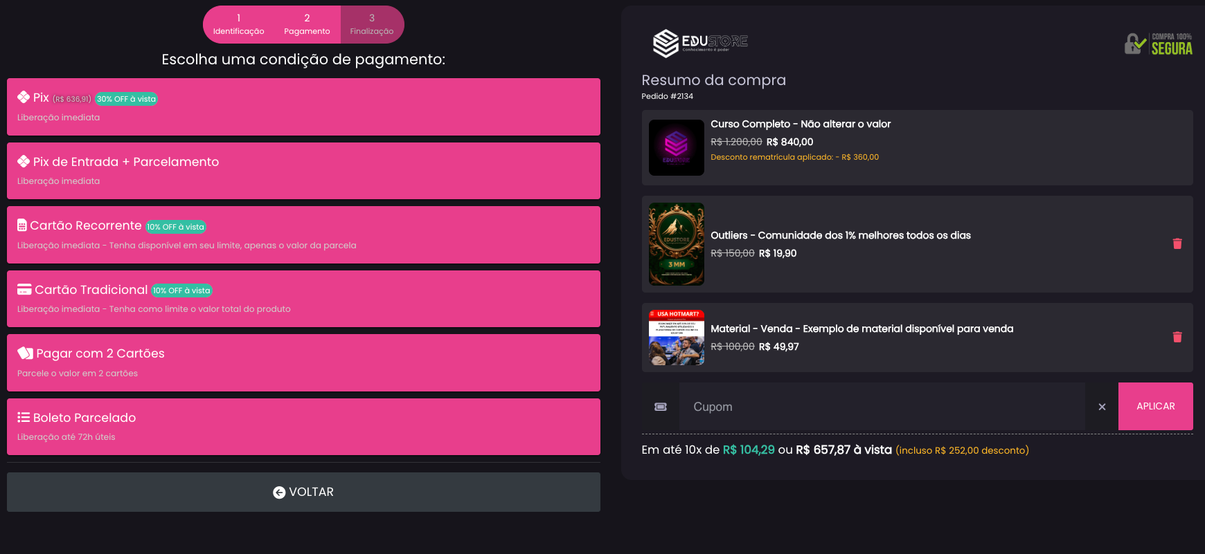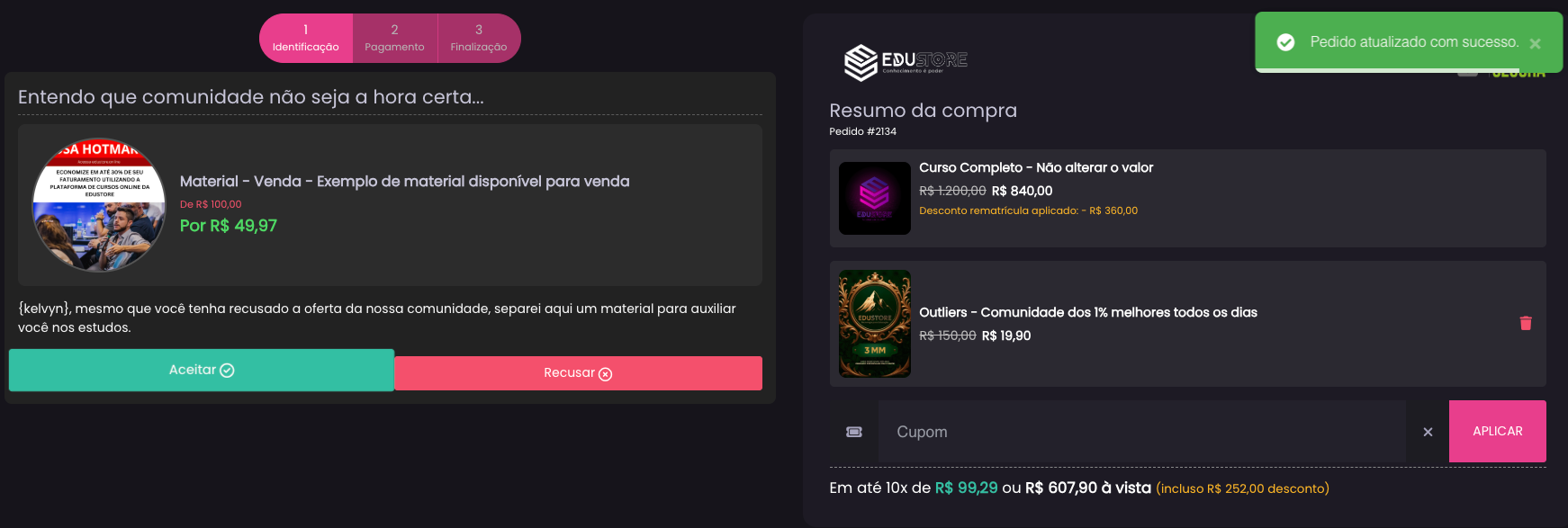 Order Bumps no Checkout / Pix Entrada + Parcelamento