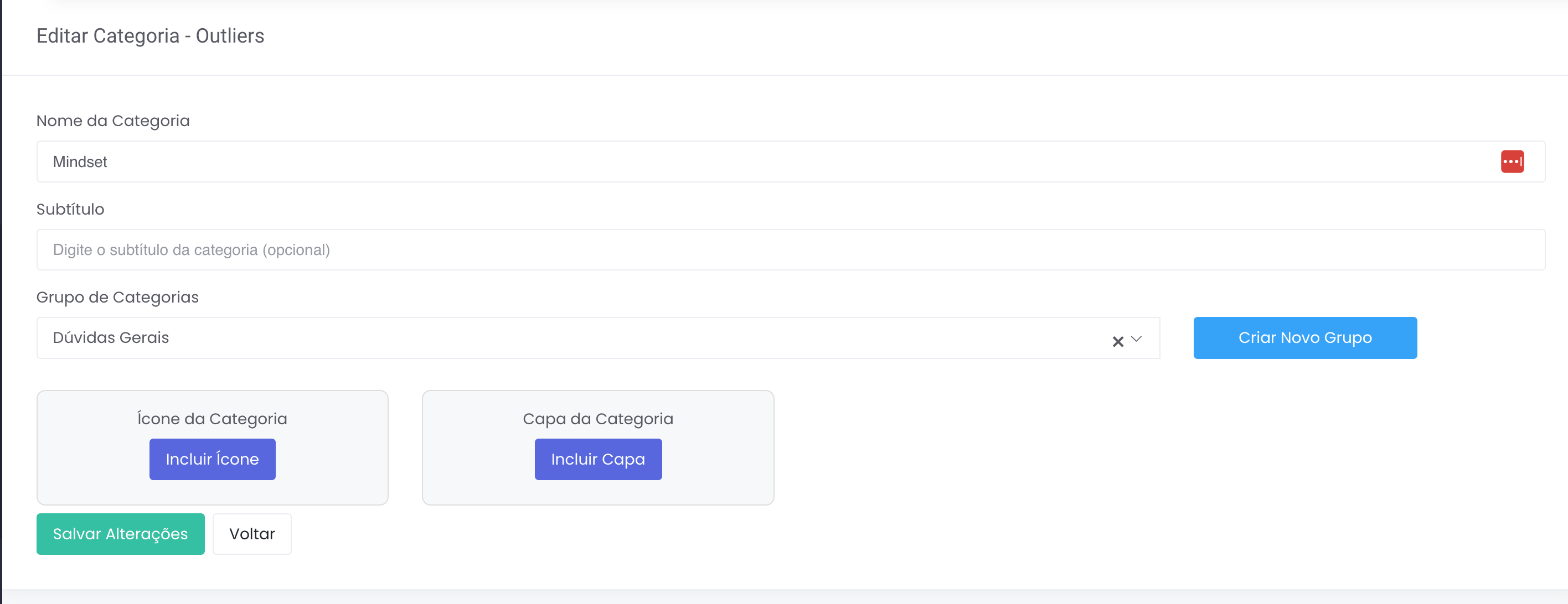 - Editar: Permite ajustar o nome, ícone ou grupo de uma categoria.