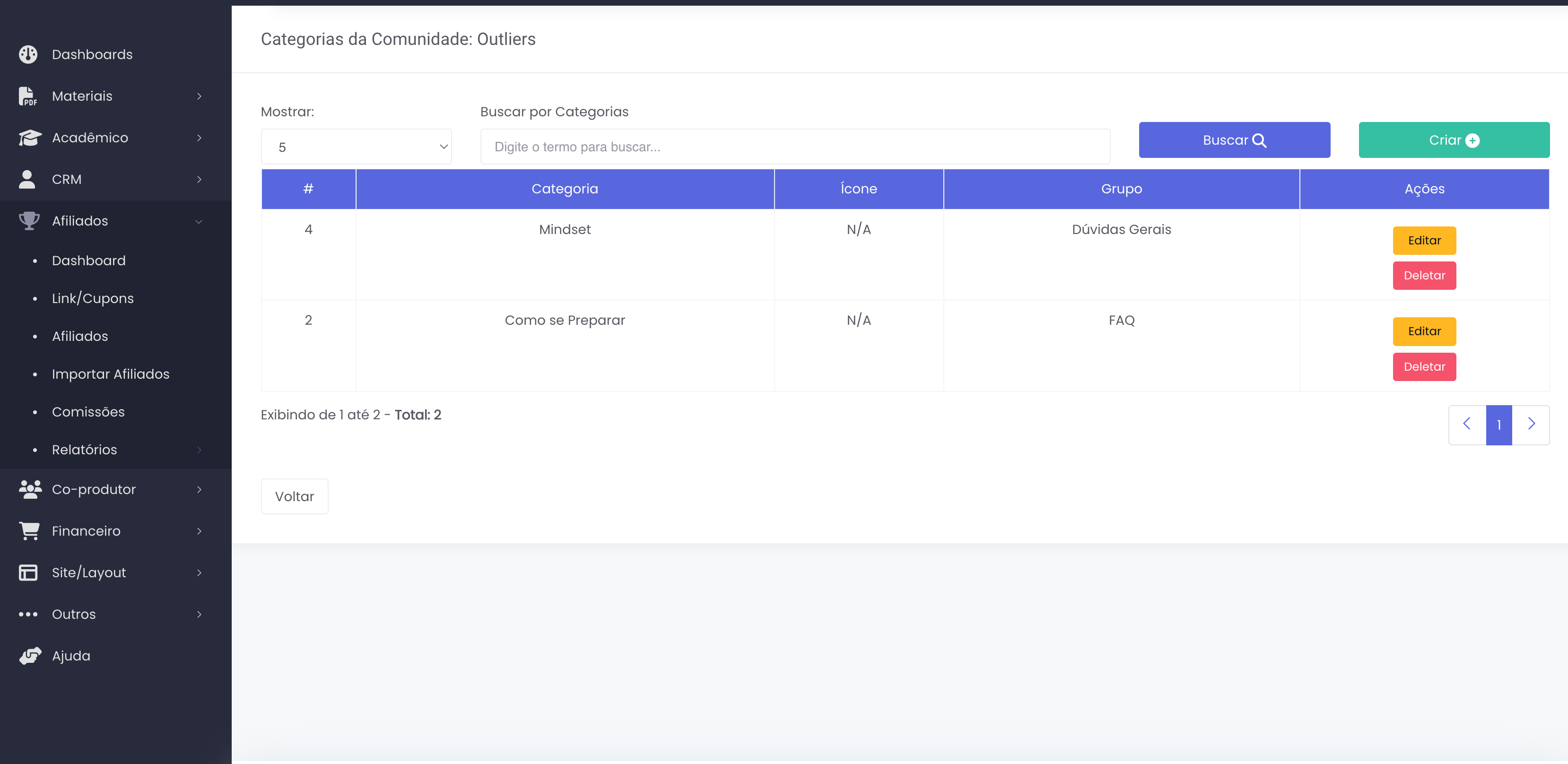 - Deletar: Remove a categoria de forma definitiva, caso não seja mais necessária.