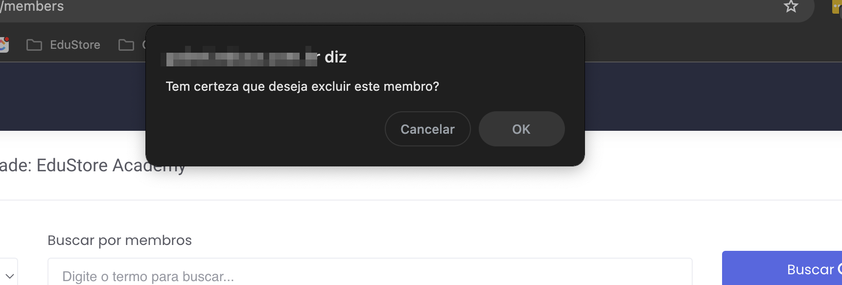 Ao aparecer a mensagem de confirmação, basta apenas confirmar dando "OK", ou "Cancelar" para desfazer para deletar o membro: