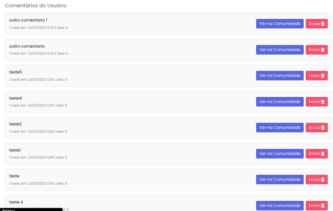 - Excluir: Para excluir um post diretamente, todos os comentários relacionados a esse post serão apagados.