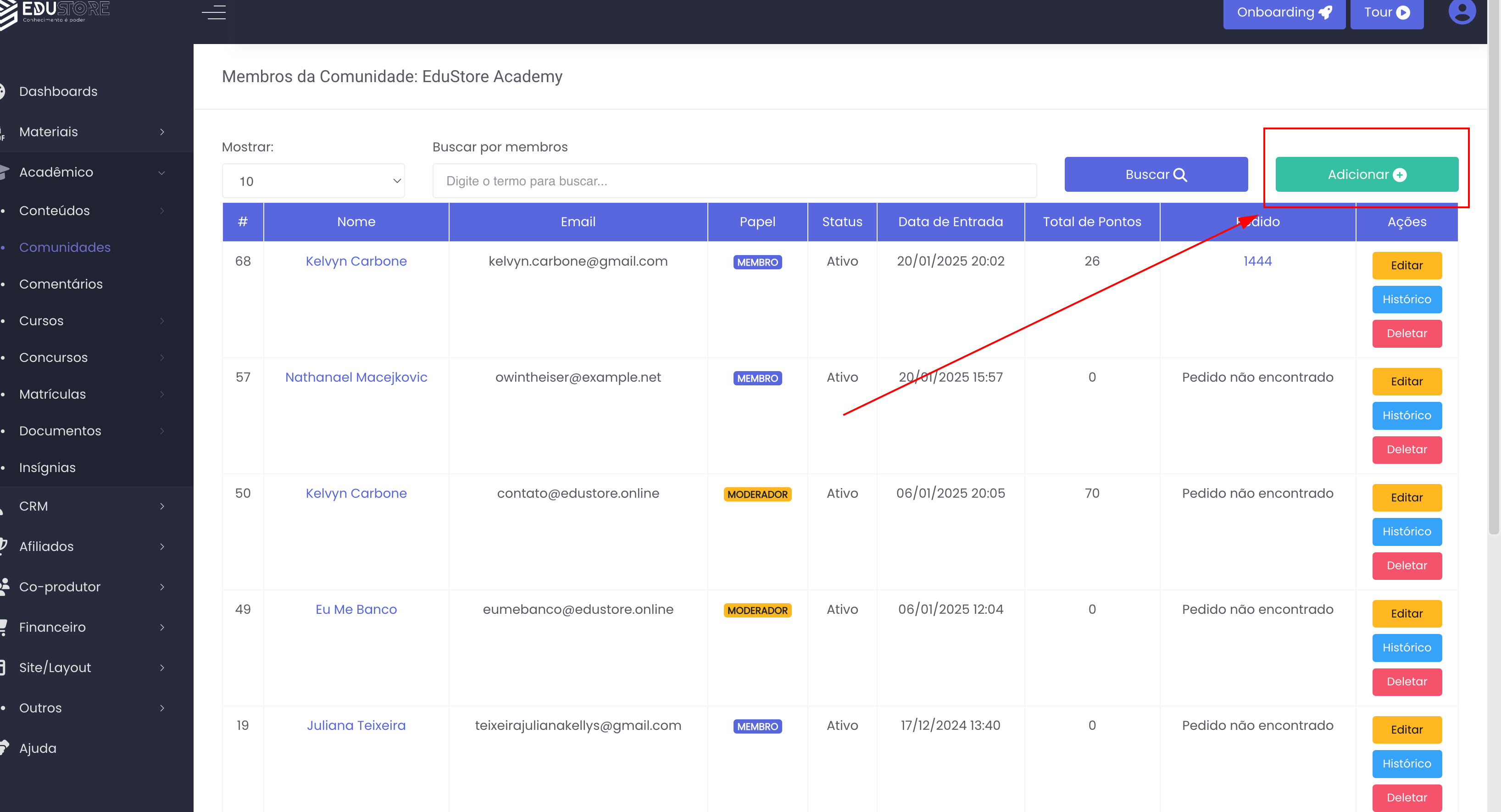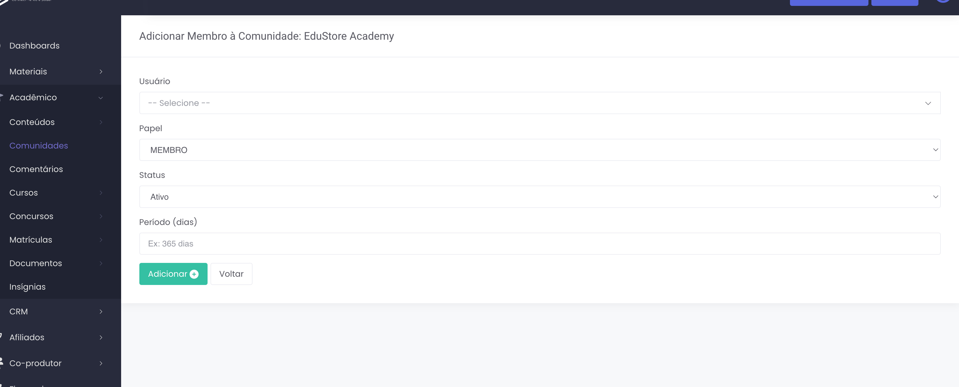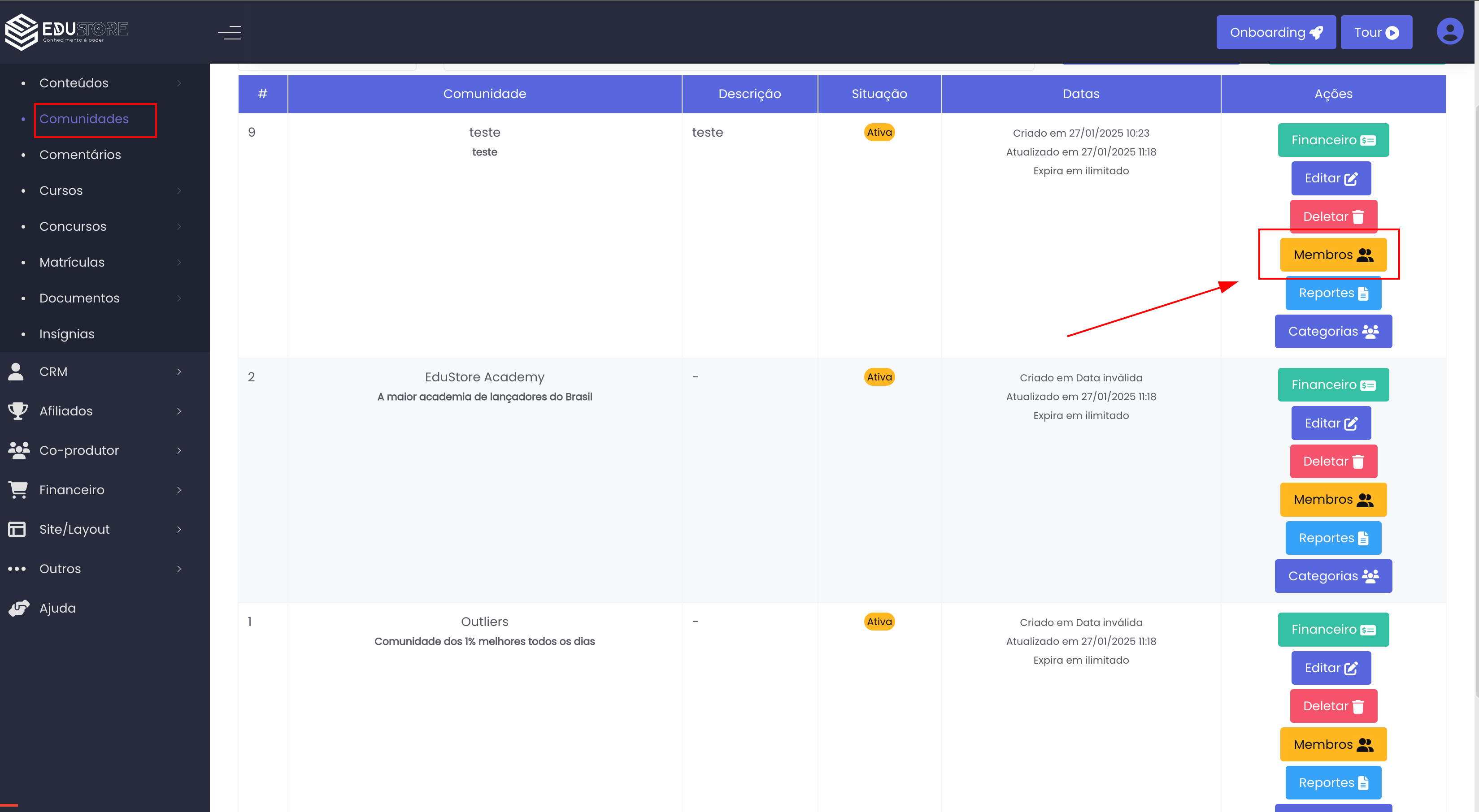 Adicionando, Editando e Excluindo Membros da Comunidades