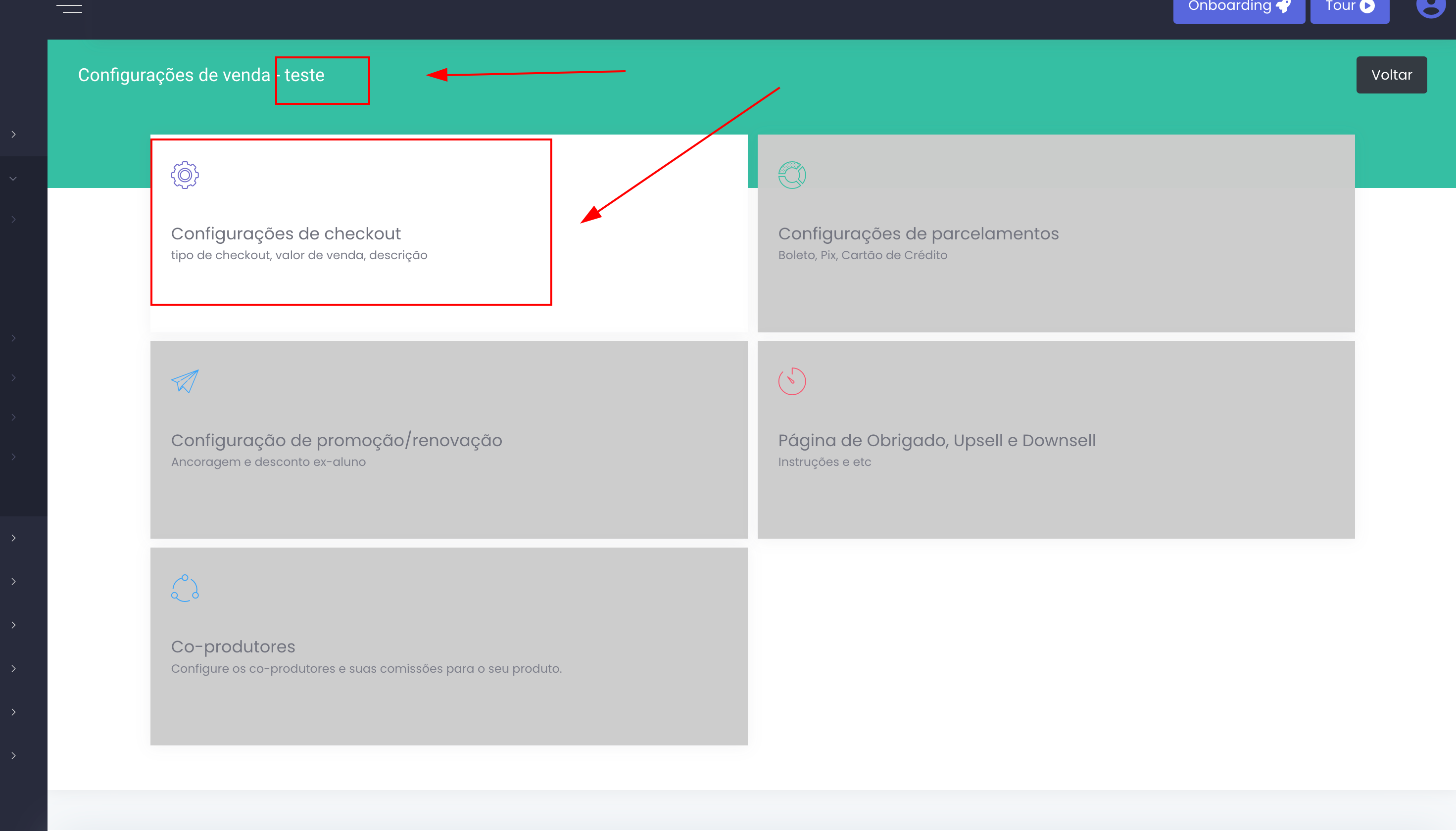 Selecione o formato do checkout desejado. As opções disponíveis são: