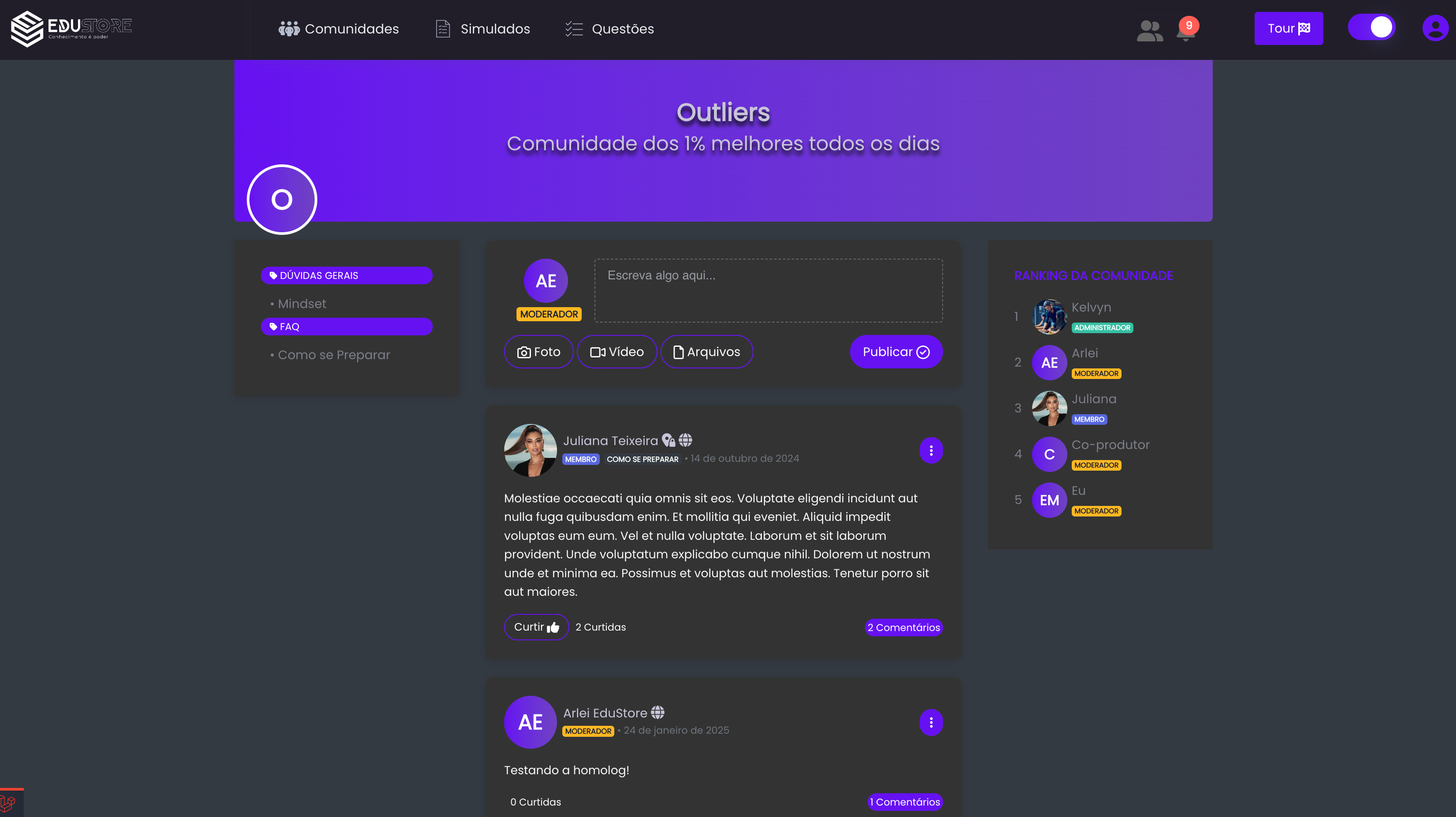 Agora, ao clicar em qualquer comunidade, o aluno será direcionado diretamente para aproveitar todos os benefícios e recursos que ela oferece. A experiência foi projetada para ser simples e intuitiva, garantindo acesso rápido ao conteúdo, interações e oportunidades disponíveis na comunidade.