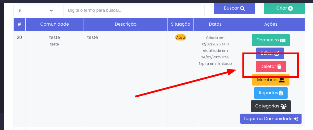 Gerenciando Comunidade: Criação, Edição e Exclusão de Comunidades