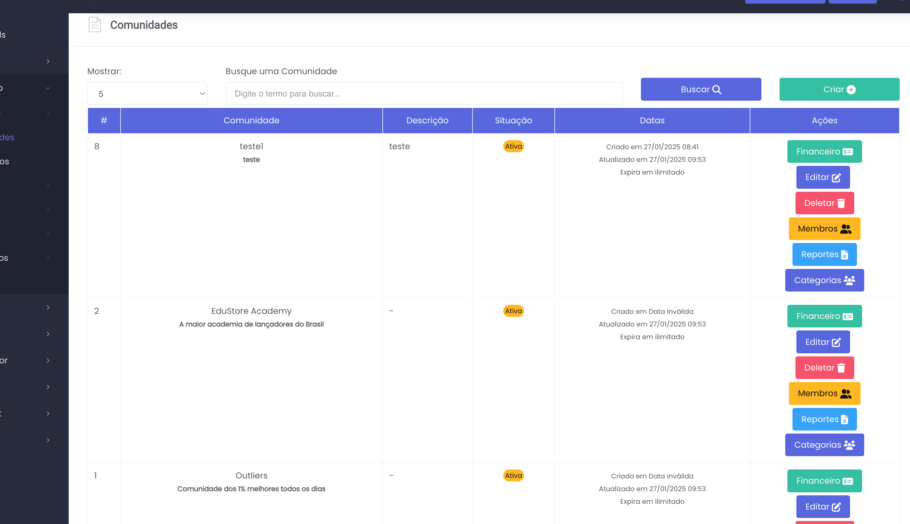 Gerenciando Comunidade: Criação, Edição e Exclusão de Comunidades