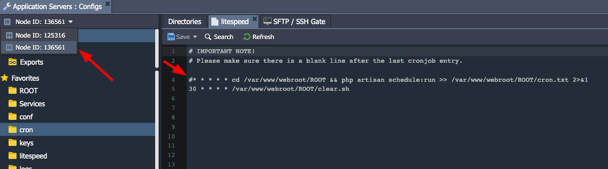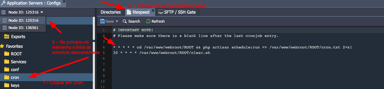 Após adicionar ou remover nós de apache é importante ajustar o arquivo CRON, acesse o arquivo cron do primeiro nó e deixe em apenas um dos nós o schedule do Laravel.