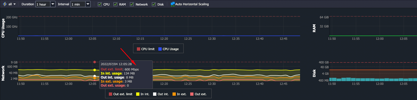 O Out ext. limit deve estar no máximo, para aguentar o tráfego de rede, o mínimo para lançamentos é de 400MB.