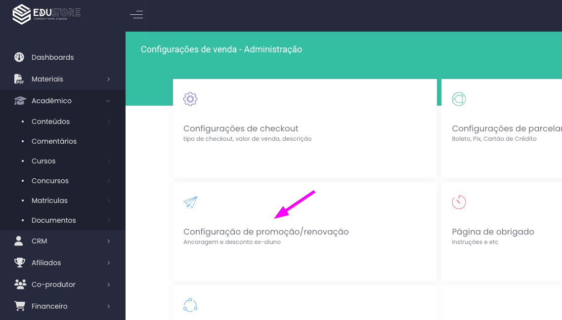 Em curso, clica financeiro/online. Nos dados financeiros, clique na opção de promoções/renovações: