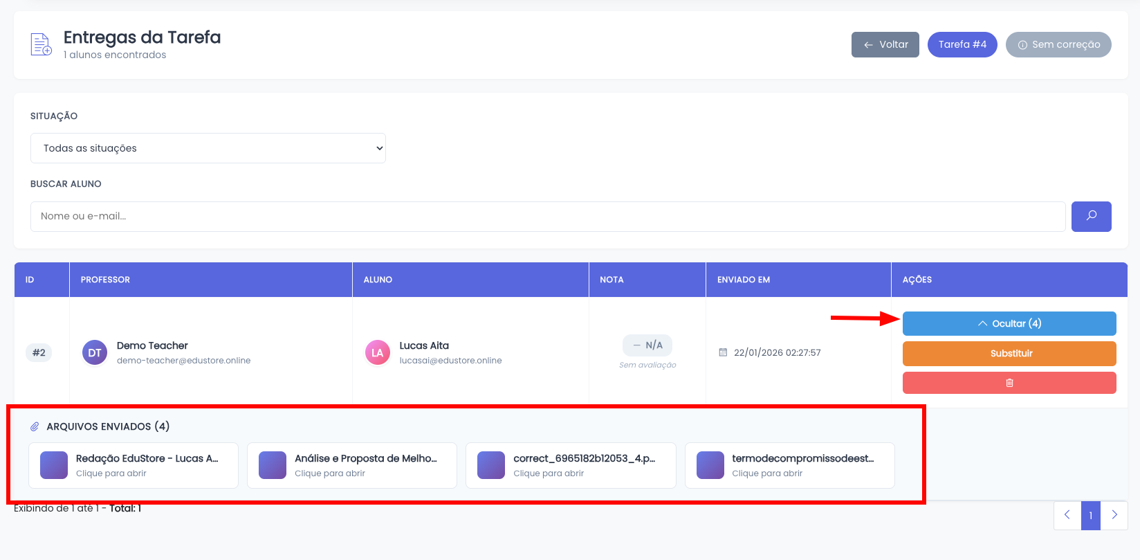 - Aparece apenas quando há arquivos enviados pelos alunos.