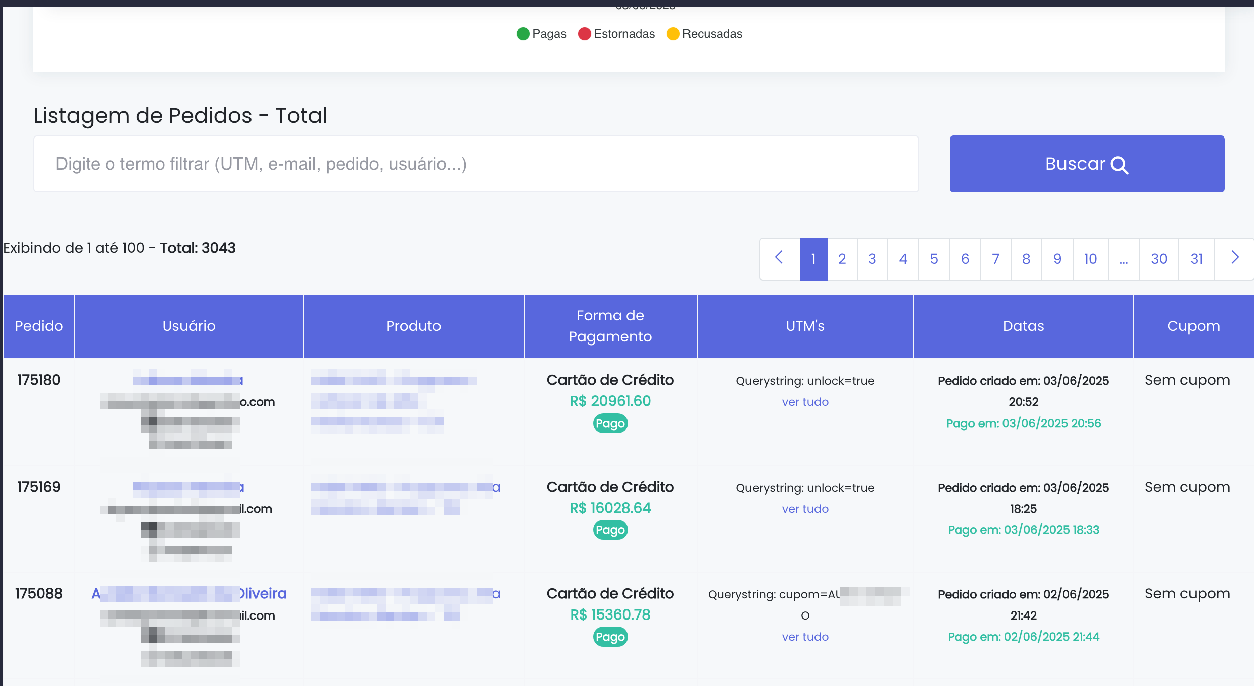 Muitas vezes precisamos que o time de vendas tenha acesso ao total vendido, pedidos, número de matrículas e busca por utm's e parâmetros.
