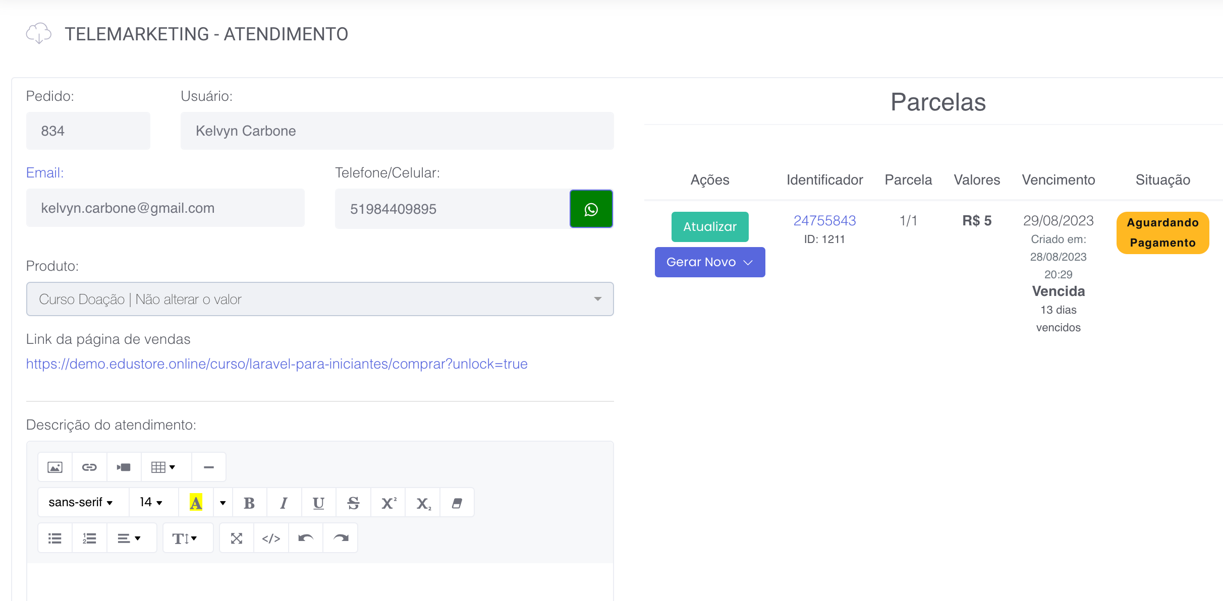 Além disso, se há transações já criadas/vencidas você poderá renegociar e até mesmo gerar cupom de desconto para compras ainda não finalizadas.